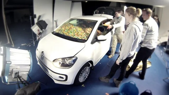 Load a Volkswagen up! with sweets and sports balls and ask the fans to guess how many we fit inside. Video digital display ads communicated the same message of spaciousness in different ways. The take out being, 'The Volkswagen up! is surprisingly spacious.